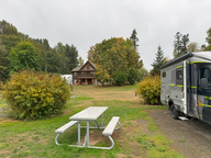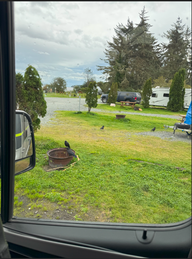 Der Provinzielle Park wäre noch offen gewesen, aber wir wollten wieder einmal duschen. Also fuhren wir weiter Richtung Courtenay. Dort angekommen, suchten wir den ersten Campingplatz auf, aber er sah nicht so sauber aus. Darum fuhren wir einen Kilometer weiter zum zweiten. Der gefiel uns viel besser und wir nahmen einen Platz dort. Nach dem Duschen machte Doris das Abendessen und danach die Hundeportionen.