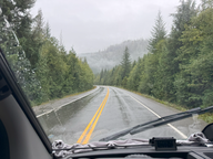 Danach ging es Richtung Port Alice. Wir fuhren südlich und nach 18 Kilometern kamen wir zur Abzweigung nach Port Alice. Es ging 40 Kilometer ins Landesinnere, dann kamen wir in Port Alice an. Es war sehr neblig und regnerisch. Leider war der einzige Campingplatz schon geschlossen und auch der auf dem Weg liegende Provinzpark war seit Mitte September geschlossen.