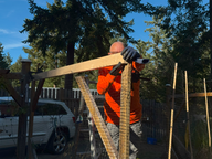Wir fuhren zur Lumber Factory in Sturdies Bay. Dort kauften wir einen Balken und Schrauben. Nachdem wir zurückkamen, begannen wir, den defekten Balken aus dem Tor zu entfernen.