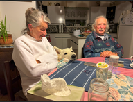 Zum Abendessen gab es Reste (Hörnli mit Gehacktem). Danach arbeitete Doris weiter an ihren Bären; sie hatte wieder Stopfmaterial.