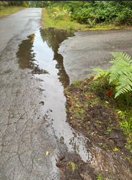 Da der untere Teil der Straße von der heruntergeschwemmten Erde nun befreit war, hatten wir einen großen See. Ich machte seitlich zwei Abläufe, sodass das Wasser nicht mehr stand.