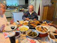 Doris kam nach dem Spaziergang am Morgen zurück, dann frühstückten wir und anschließend ging Doris ins Haus, da Bert sehr früh (um 10 Uhr) mit dem Kochen anfing, da der Truthahn sehr zeitaufwendig ist.