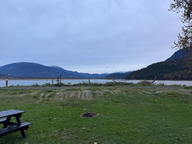 Nachher fuhren wir wieder zurück Richtung Harrison Hot Springs. Fünf Kilometer davor, fuhren wir Richtung Vancouver bis nach Harrison Mills. Wir schauten uns zuerst den Golfclub (mit RV-Stellplatz) an, aber alles war sehr hochgestochen und man konnte nirgends den Platz buchen. Also fuhren wir zurück über die Brücke und fanden einen „normalen” Campingplatz am Anfang des Städtchens. Dort fanden wir einen Platz. Während Doris mit Quenny spazieren ging, montierte ich das neue Ladegerät und schloss es an. Es scheint zu funktionieren.