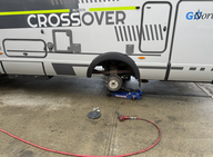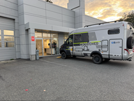 Um 08:15 Uhr fuhren wir dann vom Campingplatz zu Aburtus RV ab. Dort angekommen, mussten wir zehn Minuten warten, dann ging es schnell. Nach einer Stunde zeigte mir Lesly, dass ein Teil nicht dicht war (die Tür der WC-Kassette), was aber mit der Dichtigkeitsprüfung zu tun hat, da nur die Tür und nicht der Rahmen auf das Gehäuse betroffen war.