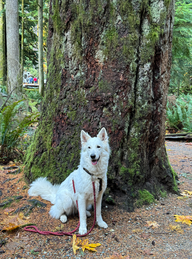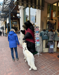 Also machten wir uns zu Fuß mit Quenny auf den Weg. Nach einer Stunde waren wir in der Innenstadt und bummelten durch die Ladenstraße. Dann gingen wir zu Starbucks und tranken etwas Warmes. Auf dem Rückweg gingen wir an einem Häkelgeschäft vorbei, da Doris dringend noch Augen für ihre Teddybären brauchte. Nachdem Doris sich vom Laden losreißen konnte, gingen wir wieder zurück zum Campingplatz. Unterwegs trafen wir zum ersten Mal einen anderen weißen Schäfer in Kanada. Der Großvater des Hundes kam aus der Schweiz. Besonders witzig war, dass er genauso „maulte” wie Queeny.