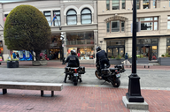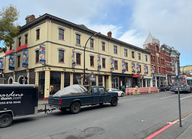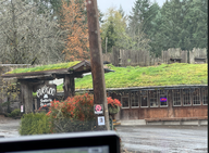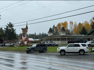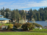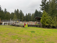 Um 10:45 Uhr fuhren wir nach Coombs, das nur sechs Kilometer von Parksville entfernt war. Wir waren um 11:15 Uhr in Coombs, das klein und etwas altertümlich wirkte. Wir fuhren bis zum Rodeo-Stadion und Doris ging mit Queeny schnell raus. Danach fuhren wir zum Parkplatz des Cuckoo, einer italienischen Trattoria. Wir parkten unseren Wagen unten an der Straße, da er für die anderen Parkplätze zu groß war, und warteten auf Hansjörg und Kathy Rüegg. Mit ihnen hatten wir in ihrem Lieblingsrestaurant einen Termin. Sie parkten auf dem oberen Parkplatz, weshalb Hansjörg uns abholte, als sie da waren.
