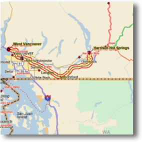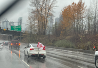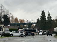 Dann ging es Richtung Vancouver weiter. 10 km vor Vancouver hatten wir zum ersten Mal eine Bauern-Demo auf der Interstate gesehen. Auf einer dreispurigen Straße war die mittlere Spur von Autos mit Warnlichtern, Kanada-Fahnen und Plakaten befahren. Das ging fast bis North Vancouver. Dort fuhren wir zuerst zu Walmart (Reinigungsmittel) und anschließend zu Rona (Heimwerkermarkt). Dort kauften wir noch Abdeckplanen zum Schutz des Hymers. Danach fuhren wir zum Campingplatz. Da wir reserviert hatten, hielt sich der Papierkrieg in Grenzen und wir fuhren zu unserem Platz.