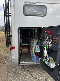 Um 9:30 Uhr riefen die beiden an und wir quasselten eine Stunde. Um 11:00 Uhr begannen wir mit unserem ersten Vorbereitungstag. Ich begann mit der Außenreinigung des Hymers und Doris mit der Innenreinigung (Führer Kabine).