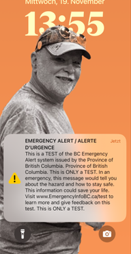 Danach hatten wir unser wöchentliches Video-Gespräch mit Frank und Corinna (o. H.). Nach 2,5 Stunden wurde unser Gespräch brutal von allen unseren Mobiltelefonen und iPads unterbrochen. Wir erhielten einen BC-Test-Alarm, der so laut und ungewohnt war, dass wir richtig erschraken.