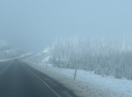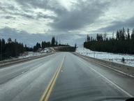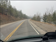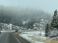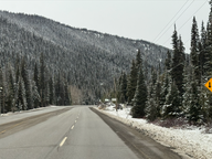Wir kamen bis auf 1800 m hoch und die Umgebungstemperatur fiel auf -2 Grad. Plötzlich hatten wir auch Schnee am Straßenrand. Die Straße führte uns über das Hochplateau und war eine sehr spannende Route. Nach Aspen Grove ging es wieder bergab und auch die Temperaturen pendelten sich wieder im Plusbereich ein.