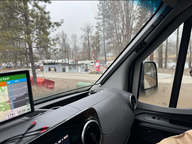 Nachdem wir fertig eingekauft hatten, fuhren wir über die Straße zu Mercedes-Benz Kelowna. Wir haben ein Problem mit einigen Fahrassistenzsystemen, die sich kurz nach der Reparatur des Fronteils, sich dauernd deaktivieren. Das ist sehr unangenehm, besonders bei starkem Wind. Morgen um 07:45 Uhr haben wir einen Termin zum Auslesen des Steuergeräts.