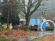 Um 15:00 Uhr gingen wir bei leichtem Regen durch die Stadt und sahen zu, wie sie die Weihnachtsbeleuchtung rund um den Strandweg aufstellten.