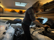 Danach fingen wir an, den Wagen vorzubereiten. Heute sortierten wir unsere Kleider, da Doris noch waschen wollte. Einige Sachen (Schuhe, Jacken) nehmen wir mit nach Hause, weil sie zuviel waren