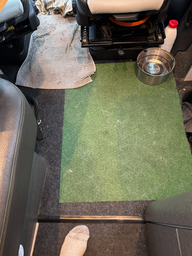 Doris ging mit Queeny spazieren, während ich ein Video drehte. Darin zeige ich, wie man einen Teppich reinigt, wenn man einen langhaarigen Hund in einem Camper hat. Das ist eine echte Herausforderung. :-)